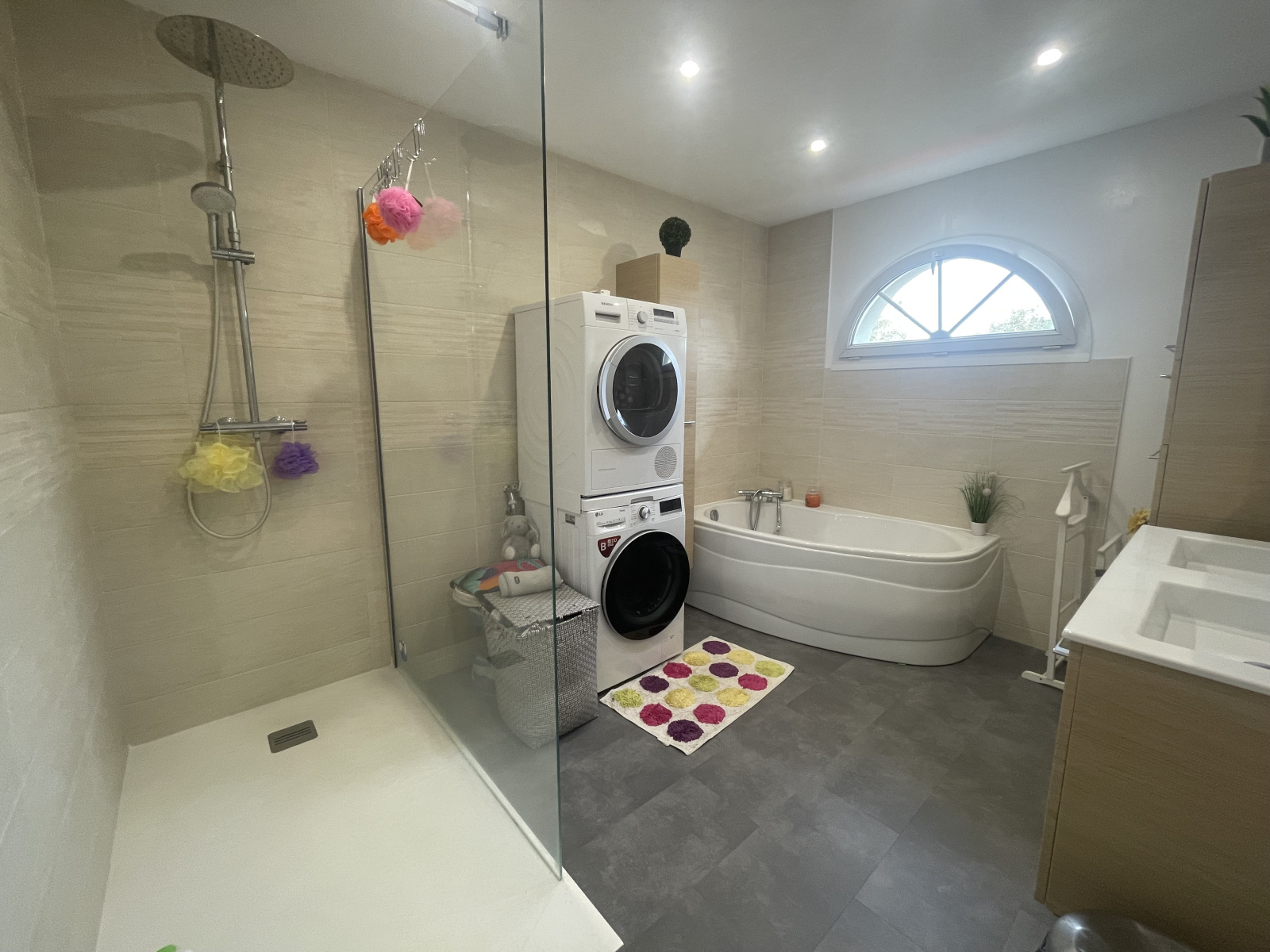 Envie de vous prélasser dans un bon bain ou tout simplement d'une douche rapide chanceux vous aurez les deux !! Belle salle de bain de 2021