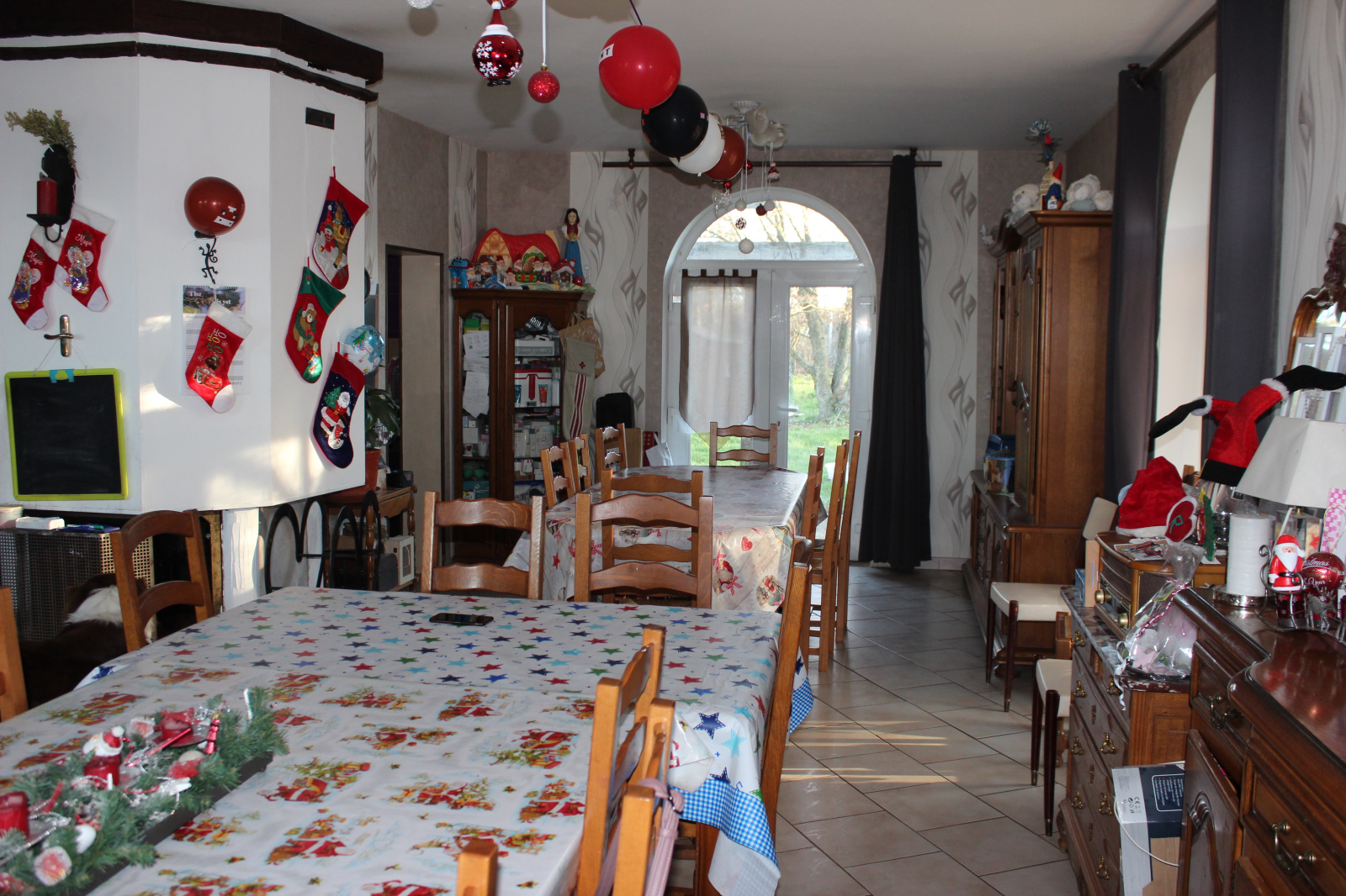 Composée d'une grande entrée, d'une pièce de vie de 66 m² avec accès à la terrasse, d'une cuisine équipée et séparée, d'un WC, d'une grande salle de douche et de 2 chambres au rez-de-chaussée de 16 et 20 m² (dont 1 avec balcon), de 6 chambres de 9 à 23.6 m² (dont 1 avec balcon, dont 1 à refaire) au 1er étage, une cave, un garage double. La maison est équipée de plusieurs types de chauffage : cheminée au bois, pompe à chaleur (chauffage principal, récent), chaudière au fioul. Parmis les équipements, il faut compter des panneaux photovoltaïques pour l'usage de la maison, un puits qui alimente la maison en eau potable, avec une possibilité de se brancher sur le réseau urbain. Des travaux sont à prévoir (4 Velux en bois de petite taille à remplacer, 1 salle d'eau à rénover...)