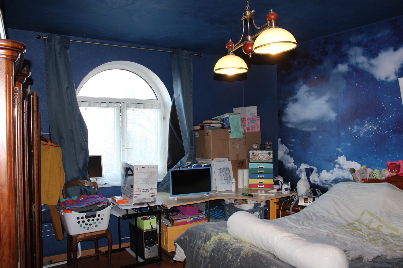 Surface au sol. Plafond HS à un endroit. Balcon
