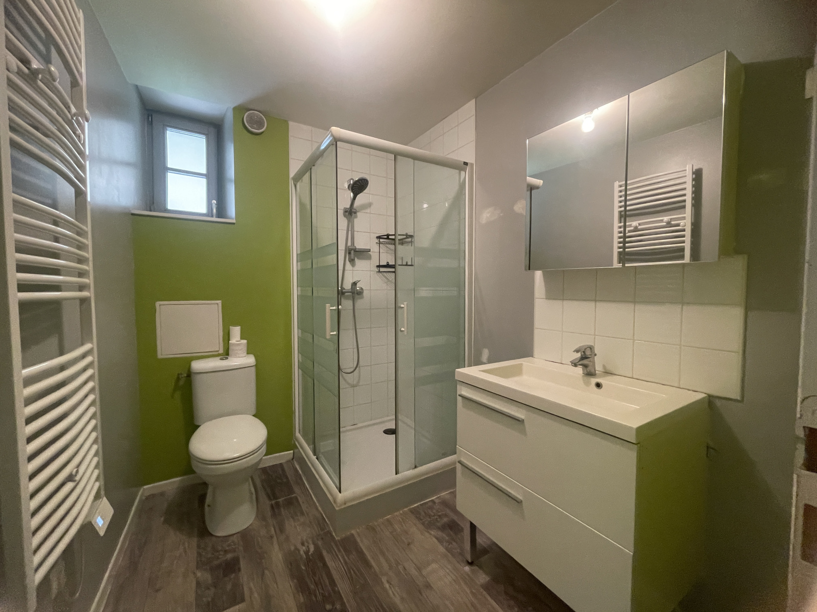 Au 1er étage : un T3 de 90m² LIBRE le loyer peut être revu à 580€ HC , chauffage électrique, terrasse donnant sur un jardin privatif de plus de 300m² également
