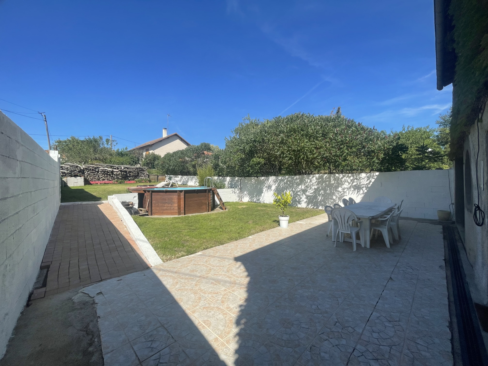 Coté extérieur : Elle dispose d'un beau terrain clôturé avec piscine bois hors sol