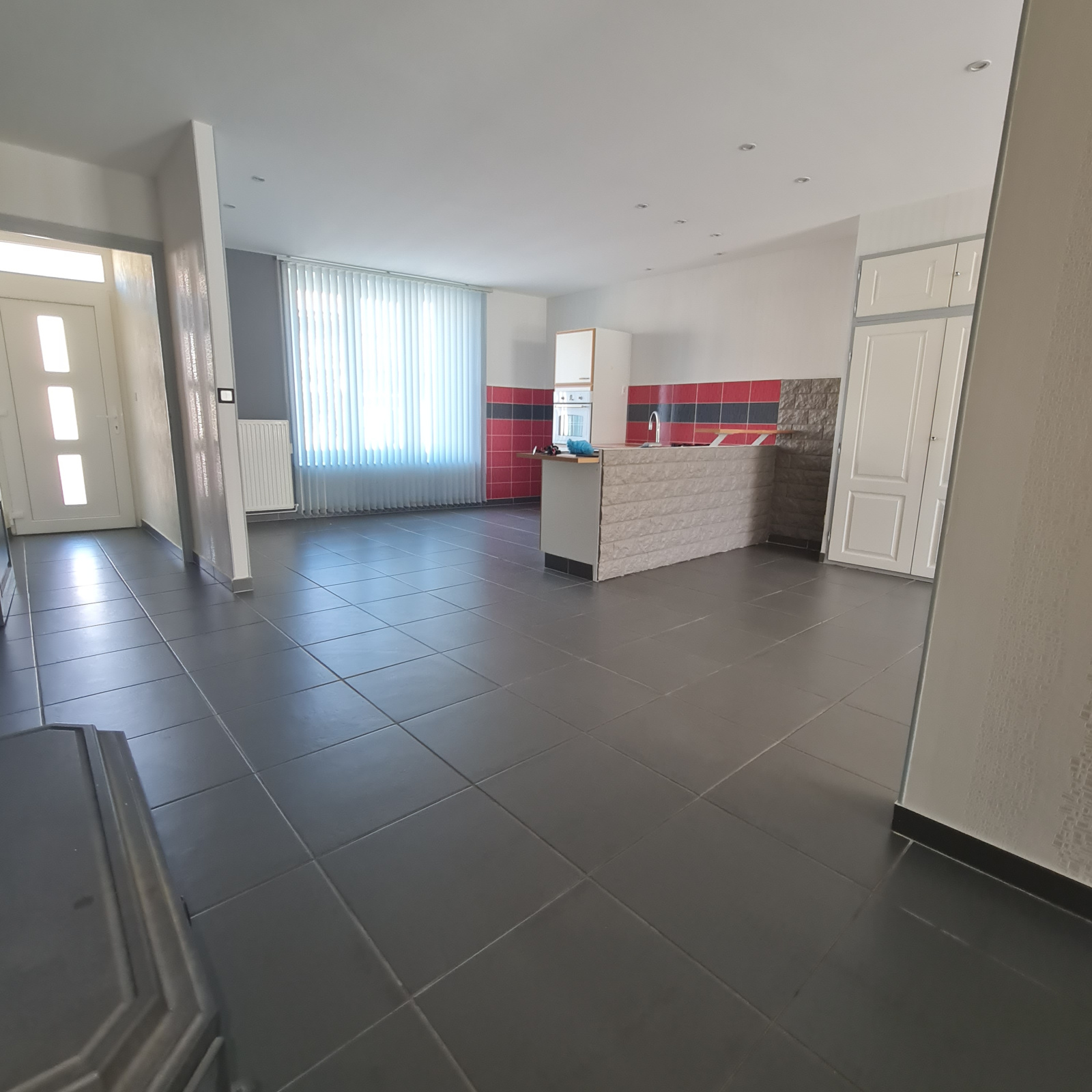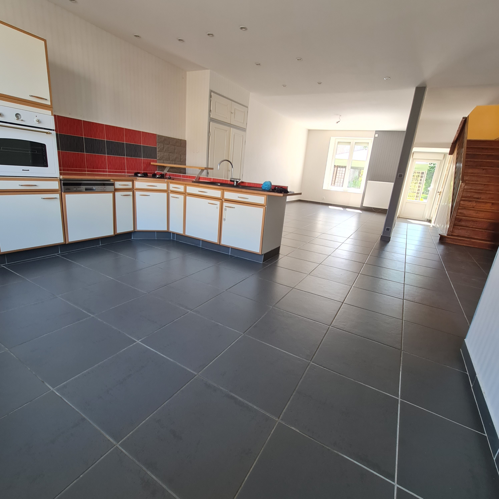 Très agréable avec une lumière traversante, la cuisine est ouverte sur le salon - séjour donnant accès sur une très grande terrasse recouverte de dalles qui lui donne beaucoup de charme.