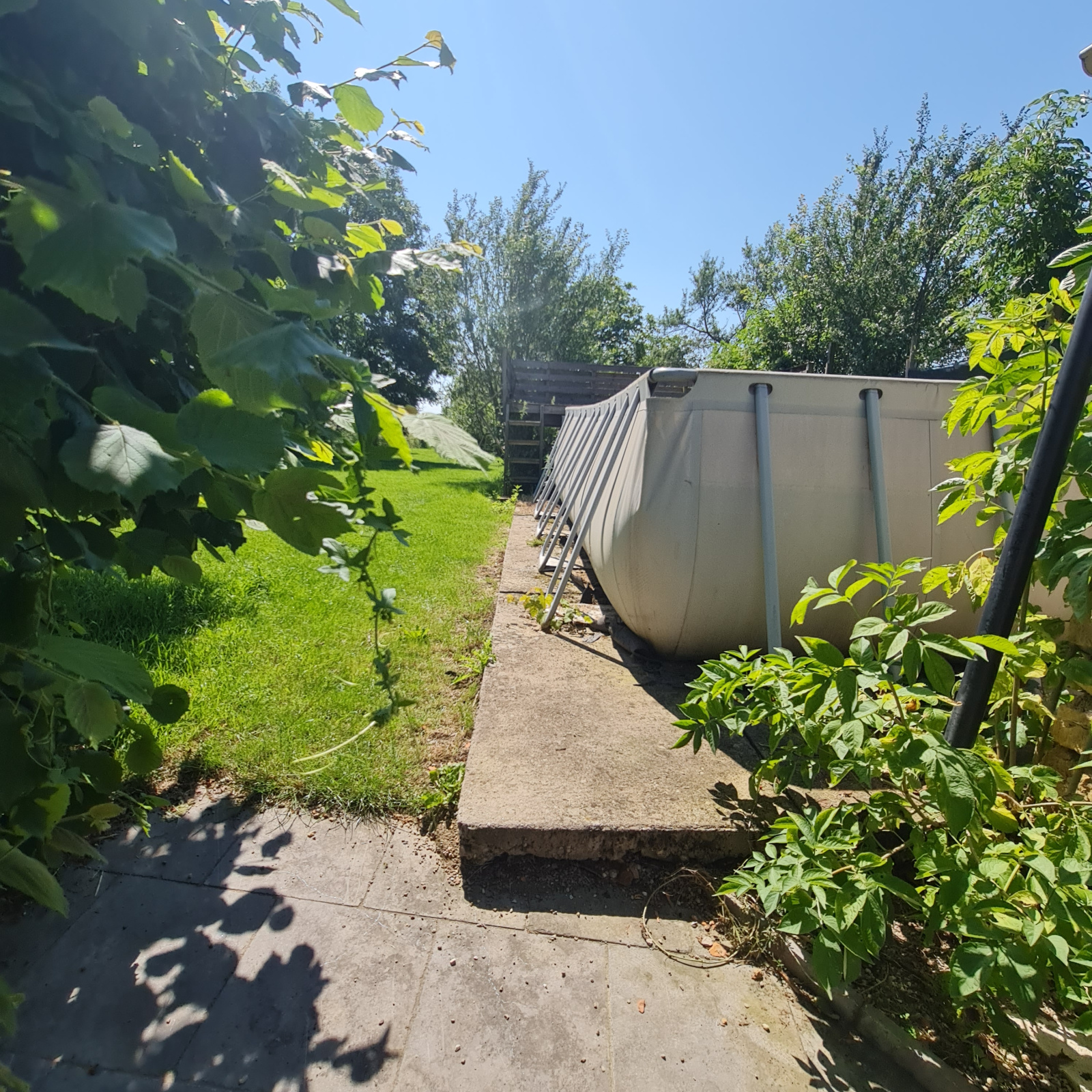 - une piscine hors sol avec « sa plage à bronzer »