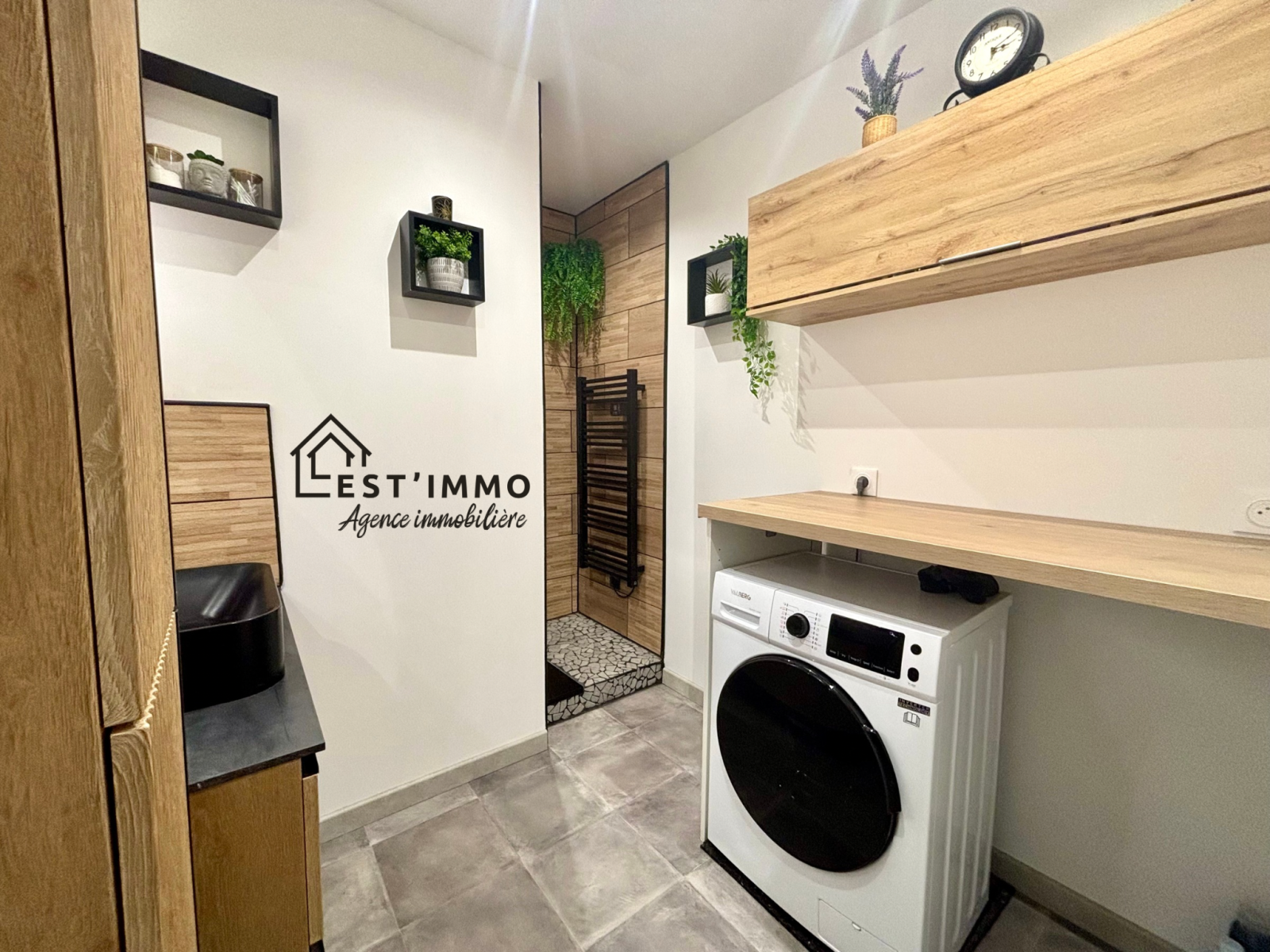 Un salle de douche à l’italienne avec un coin buanderie de 5m2 environ.