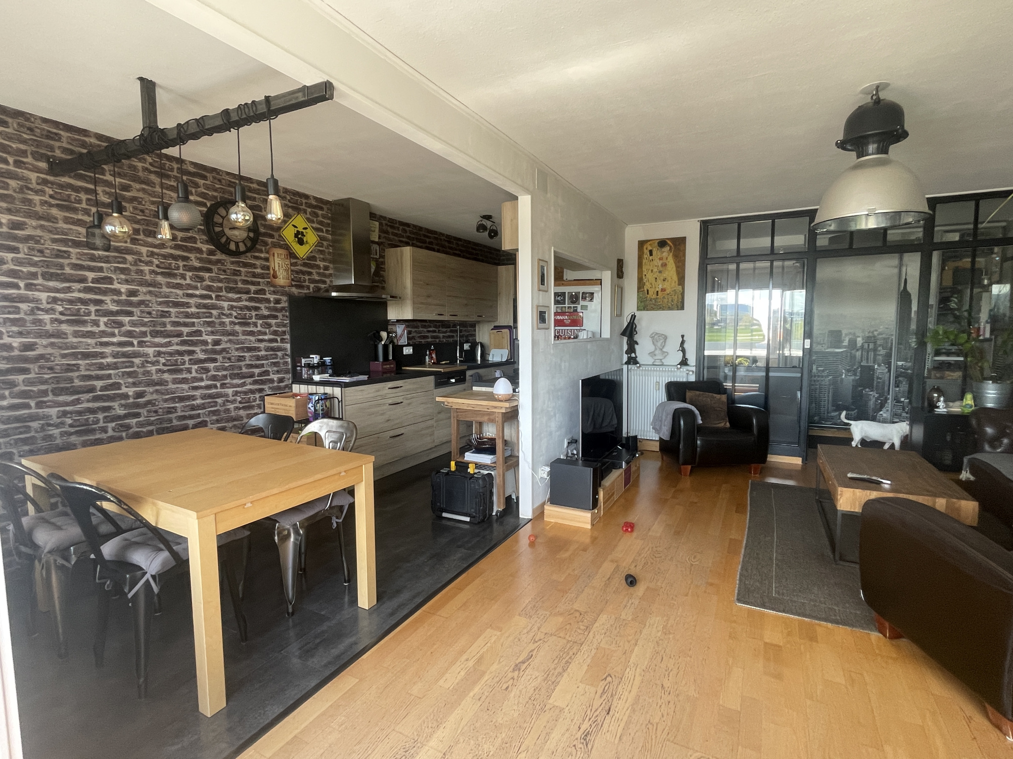 Une belle verrière sépare l’entrée du séjour/salle à manger/cuisine de 35m²