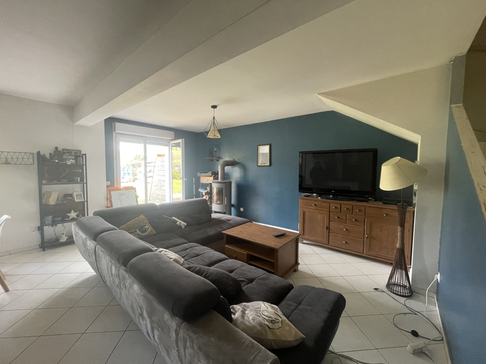 L'espace séjour est doté d'un poêle à bois qui diffuse la chaleur dans tout le bas de l'appartement