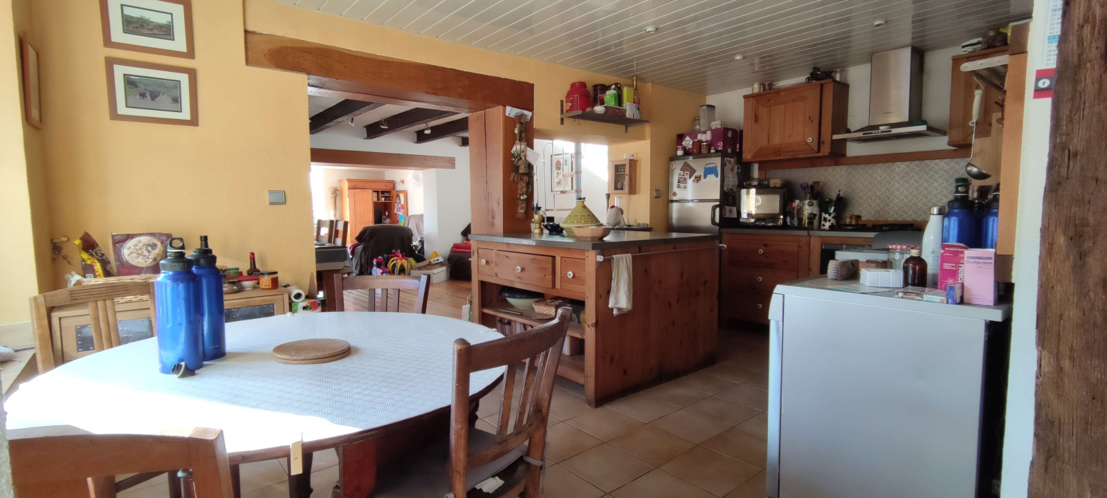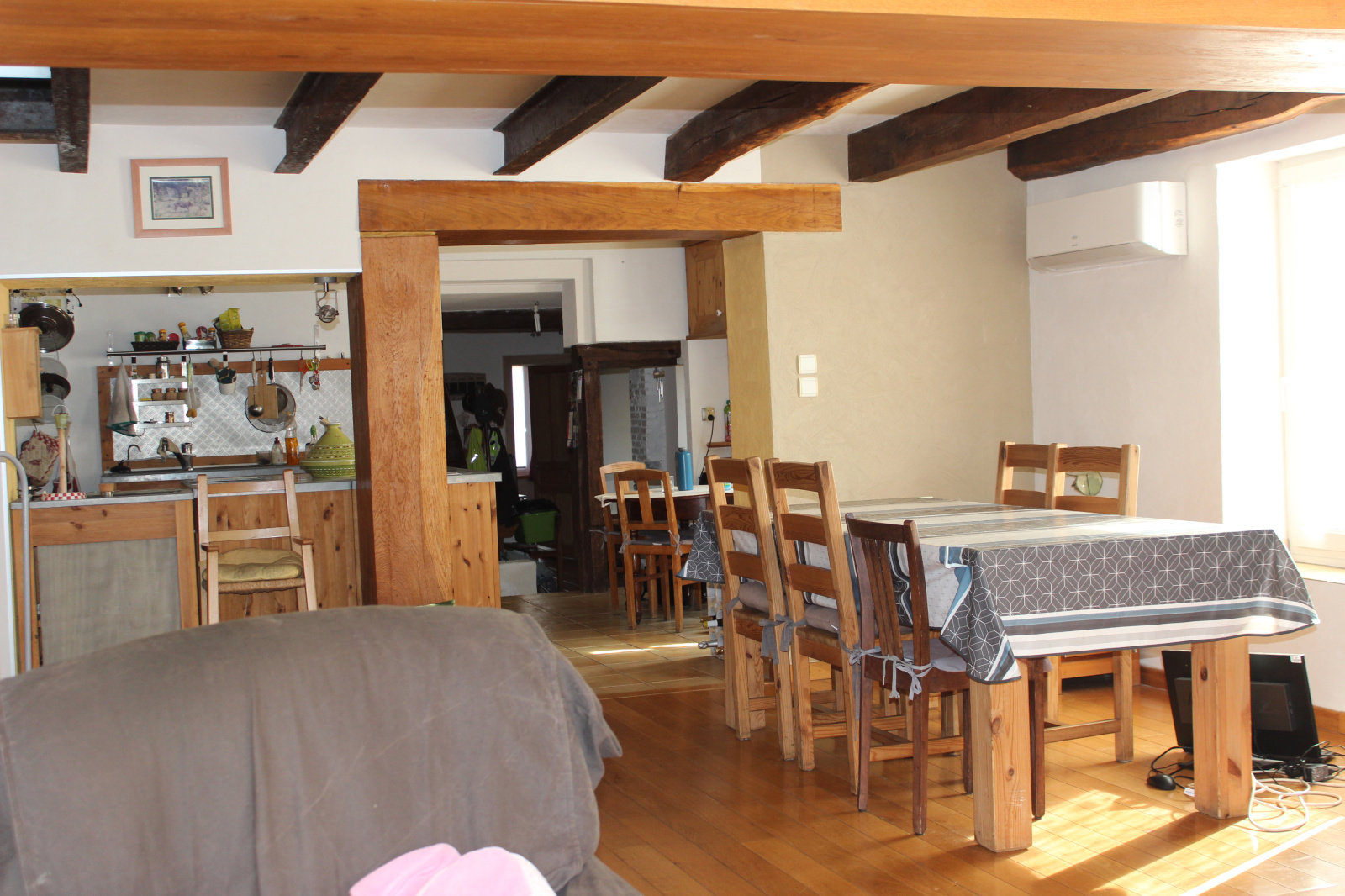 La maison est mitoyenne des 2 côtés. La toiture à l'arrière a été refaite en 2007, zingueries comprises. La maison est équipée de panneaux photovoltaïques dont le contrat avec EDF rapporte environ 2000 €/an, d'une pompe à chaleur réversible et d'un poêle à bois. Les diagnostics ont été réalisés en Juillet 2022 : DPE : B soit 106 kWh/m²/an dont GES : A soit 3 kgCO2/m²/an.